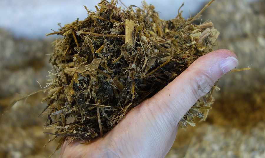 我們不希望攪拌不勻,但也不希望把TMR攪成粥樣。不要在混合時(shí)把優(yōu)質(zhì)牧草毀掉。添料時(shí)要認(rèn)真檢查一下TMR,同時(shí)再比較剩料。剩料看起來還像幾個(gè)小時(shí)前提供的飼料嗎? 還是看起來像牛圈里的墊料,只剩下枝杈?我們要確保奶牛的剩料和我們提供的飼料是一致的,都是奶牛愿意采食的。