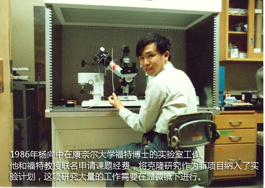 楊向中曾說(shuō)這段經(jīng)歷為他今后走入科學(xué)殿堂作了鋪墊。他酷愛(ài)動(dòng)物培育技術(shù)研究,“赤腳獸醫(yī)”的經(jīng)歷進(jìn)一步增加了他對(duì)這門學(xué)科的熱愛(ài),沒(méi)有這些經(jīng)歷就沒(méi)有他后來(lái)的克隆研究成就。