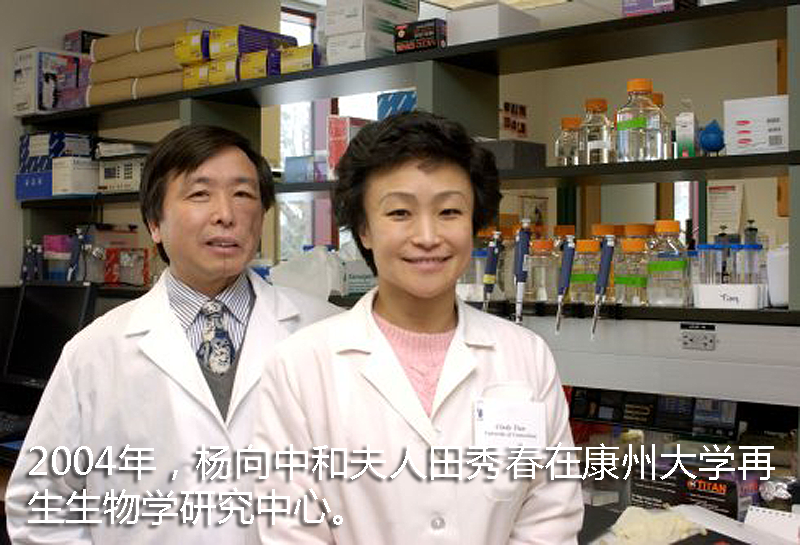 1996年楊向中加入美國(guó)康涅狄格大學(xué),任該校動(dòng)物科學(xué)系副教授和生物技術(shù)中心動(dòng)物基因部主任,負(fù)責(zé)組建該校轉(zhuǎn)基因動(dòng)物實(shí)驗(yàn)室;2001年創(chuàng)立康涅狄格大學(xué)再生生物學(xué)中心,并擔(dān)任主任。