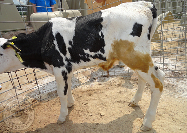 產(chǎn)后感染從接產(chǎn)衛(wèi)生,器具消毒,產(chǎn)欄地面以及臍帶消毒等方面考慮。助產(chǎn)犢牛感染風險往往比自然分娩的要高,部分原因就是經(jīng)過產(chǎn)科鏈未消毒,外傷,員工未帶手套和應(yīng)激等造成的。我更偏好不銹鋼的各種接助產(chǎn)器具,無它,只是更加方便消毒和維持干凈而已。產(chǎn)欄的地面干凈程度也十分重要,因為犢牛在采食初乳之前幾乎是零免疫狀態(tài),任何的致病微生物都可能致命。通常我們也推薦生產(chǎn)在產(chǎn)欄外或糞道的犢牛需要注射一針長效抗生素幫助抵抗可能的感染。目前,我發(fā)現(xiàn)更多的牧場臍帶消毒不到位,很容易造成臍部感染,從而通過血液循環(huán)積累到關(guān)節(jié)部位,常見紅腫,發(fā)熱甚至破損外傷。感染的致病微生物很多,包括沙門氏菌,大腸桿菌還有支原體等。